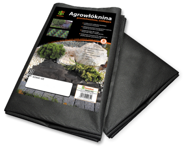 Agrowłóknina antychwastowa - czarna, gramatura 50g/m². Mocna, trwała i odporna na promieniowanie UV z tworzywa PP. Dzięki swoim właściwościom znajduje szerokie zastosowanie w ogrodnictwie, szkółkarstwie i rolnictwie do ściółkowania.