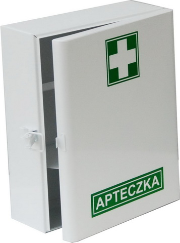 Przykład praktycznej, solidnej apteczki, którą z powodzeniem można zawiesić na ścianie. Zamykany jest na zatrzask, dzięki czemu, w razie potrzeby, można bardzo szybko z niego skorzystać. Wnętrze apteczki zostało doskonale zaprojektowane, w sytuacjach kryzysowych nie będzie problemu z odszukaniem potrzebnych artykułów medycznych. Apteczka przeznaczona jest do firmy, biura, piwnic, garaży.
