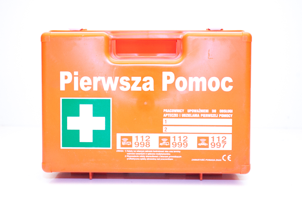 Opatrunek indywidualny G Opatrunek indywidualny M Opatrunek indywidualny K Opaska elastyczna 6 Opaska elastyczna 8 Opaska elastyczna 60x80 cm Chusta trójkątna Chusta z flizeliny 20x30 cm Kompres na rany (2szt. 10X10 cm) Plaster z opatrunkiem (10x6 cm) Asortyment plastrów opatrunkowych : -opatrunek na opuszki palców -opatrunek na palce 12x2 cm -plaster z opatrunkiem 1,9x7,2 cm -plaster z opatrunkiem 2,5x7,2 cm Koc ratunkowy Przylepiec 5m x 2,5cm Nożyczki Worek foliowy Rękawice winylowe Zimny kompres błyskawiczny Instrukcja udzielania pierwszej pomocy |