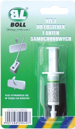 Bardzo mocny klej na bazie metakrylanów służący do trwałego mocowania  lusterka wstecznego na szybie przedniej
