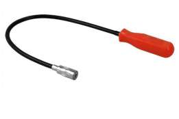 Elastyczny chwytak z magnetyczną końcówką oraz diodą LED 56cm Służy do unoszenia metalowych przedmiotów, takich jak śruby, nakrętki, podkładki, itp. z trudno dostępnych miejsc: z rur odpływowych, zza szafek, z komory silnika