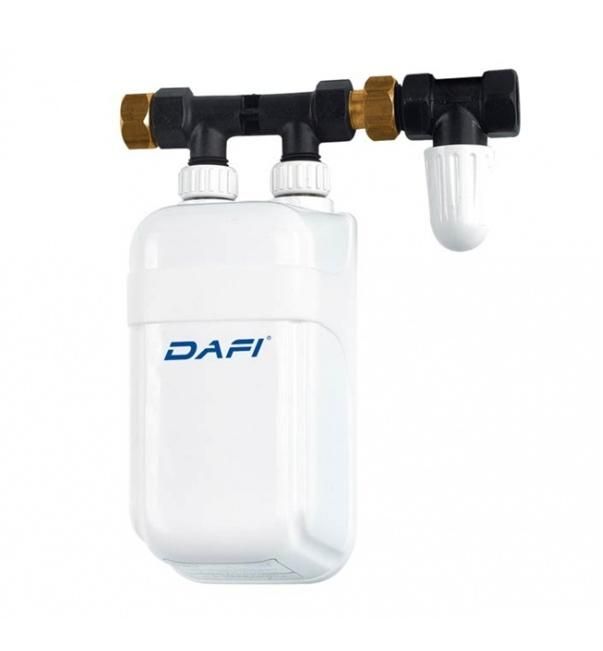 Ogrzewacz wody Dafi IPX5 - 3,7 kW to model przeznaczony do montowania nad umywalką, wraz z dołączoną w zestawie wylewką z tworzywa sztucznego w kolorze białym. DAFI z powodzeniem zastępuje systemy ogrzewania, wykorzystująceogrzewacze pojemnościowe lub przepływowe o znacznie większych wymiarachi mocach.