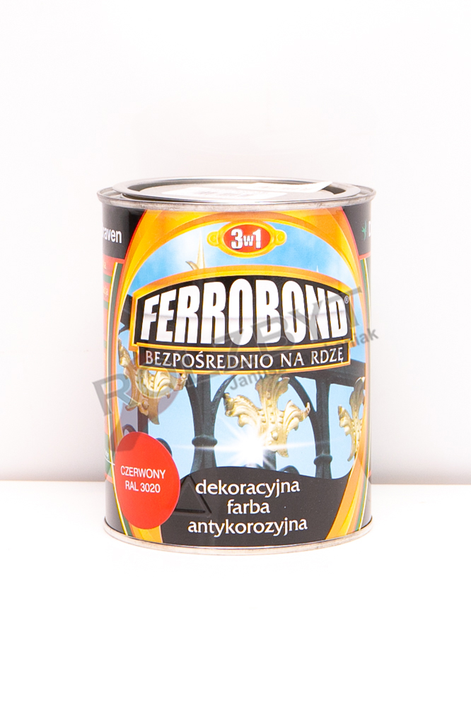 Przeznaczenie:Ferrobond jest farbą dekoracyjno-gruntującą przeznaczoną do malowania powierzchni stalowych i żeliwnych, w tym także powierzchni skorodowanych, narażonych na działanie czynników atmosferycznychZapewnia długotrwałą ochronę antykorozyjną. Odporny na zmienne warunki atmosferyczne. Ze względu na swoje własciwości jest stosowany jako grunt, podkład i powłoka nawierzchniowa w jednym