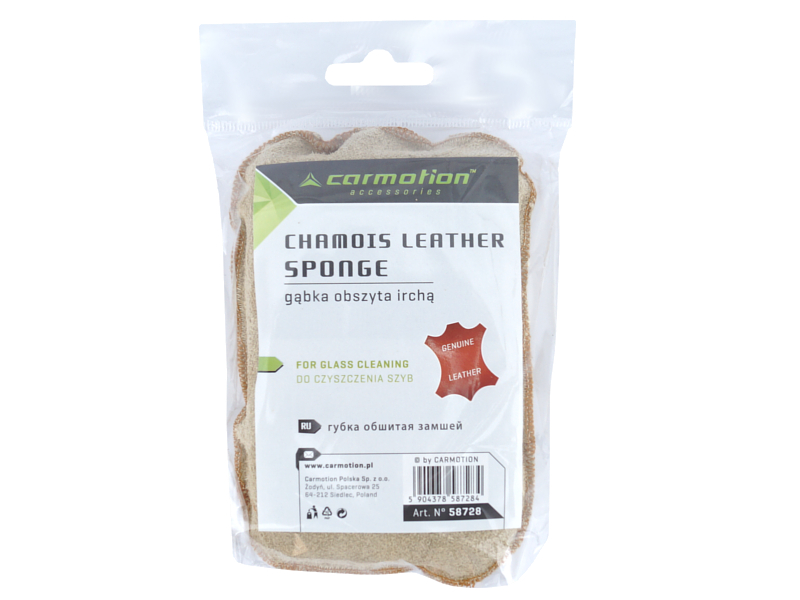 Gąbka z naturalnej irchy 100% - zszyte kawałki irchy. Kolor żółty. Doskonale pochłania wilgoć, dzięki czemu skutecznie oczyścisz zaparowane lub mokre szyby. Wymiary: 4x8x12 cm