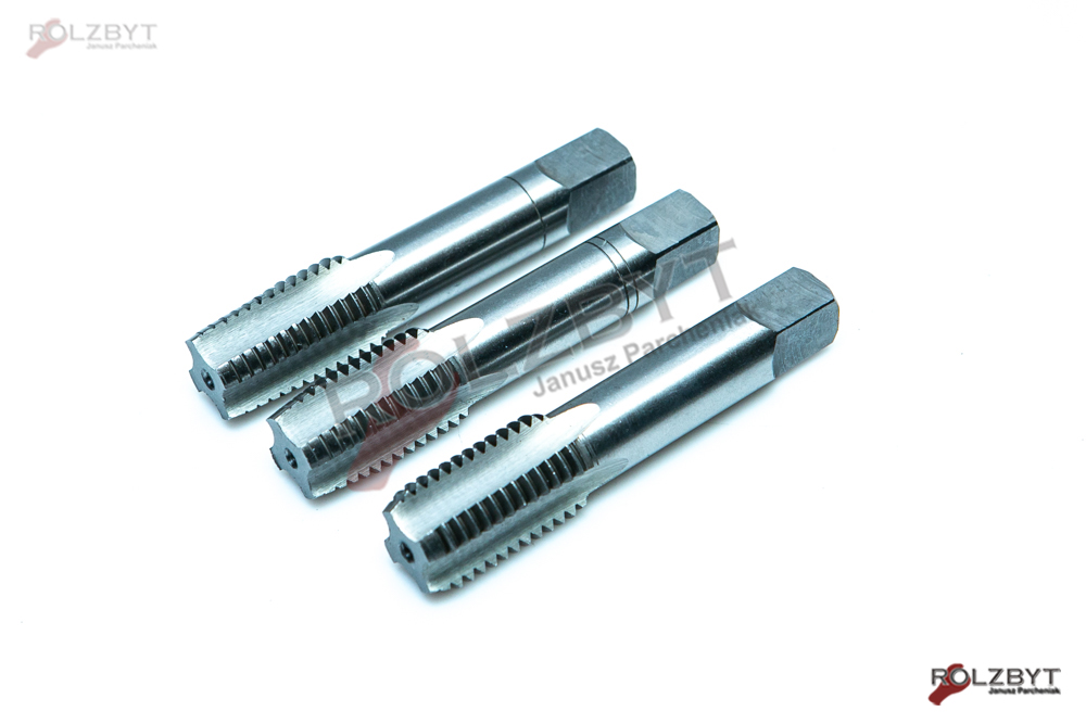 Gwintowniki z rowkami prostymi przeznaczone do gwintowania ręcznego większości metali. Zestaw składa się z trzech gwintowników - gwintownika wstępnego, zdzieraka i gwintownika wykańczającego.