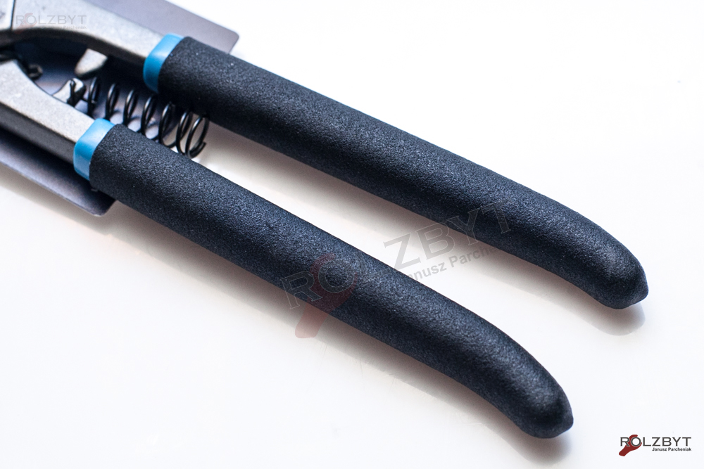 Opis produktu Szczypce do montażu i demontażu pierścieni blokujących wewnętrznych. Rękojeść pokryta tworzywem umożliwiająca pewny, wygodny chwyt i operowanie szczypcami.