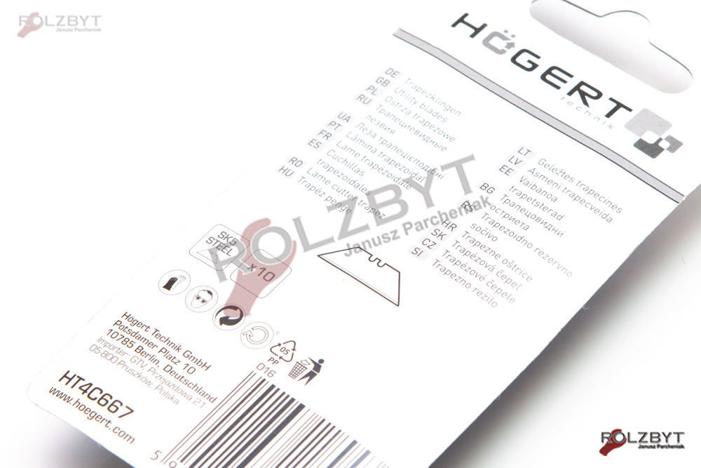 • Ostrza trapezowe wymienne 19 mm, stal SK5, 10 szt. w blistrze HT4C667