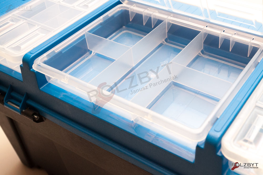 3 wyjmowane organizery w pokrywie, wykonane z przezroczystego tworzywa