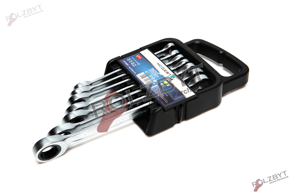 Zestaw siedmiu kluczy płasko-oczkowych z grzechotką jednostronną 72 zęby.