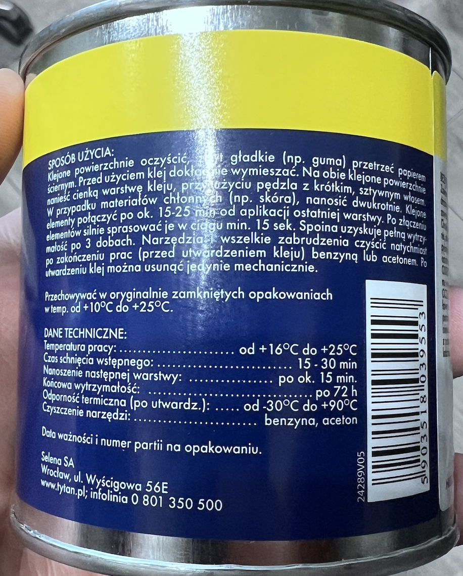 gdzie potrzebna jest duża siła klejąca. Produkt sprzedawany jest w puszce o pojemności 0,2 litra.