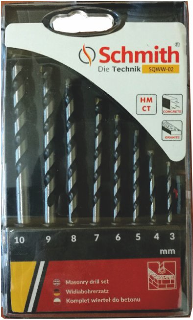 KOMPLET WIERTEŁ DO BETONU 3-10MM SCHMITH