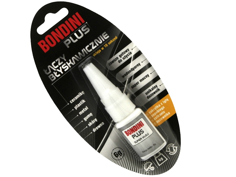 Klej Bondini Plus zalecany do łączenia materiałów trudnych w klejeniu. Skleja ze sobą prawie wszystkie materiały porowate i nieporowate: plastik, metal, ceramikę, szkło, porcelanę, gumę, drewno (włókna wchłaniające wilgoć.), skórę, tkaniny i wiele innych. Może być stosowany do klejenia nierównych powierzchni, gdyż szczelnie wypełnia mikroskopijne nierówności powierzchni. Przenika przez smary, oleje i brud.