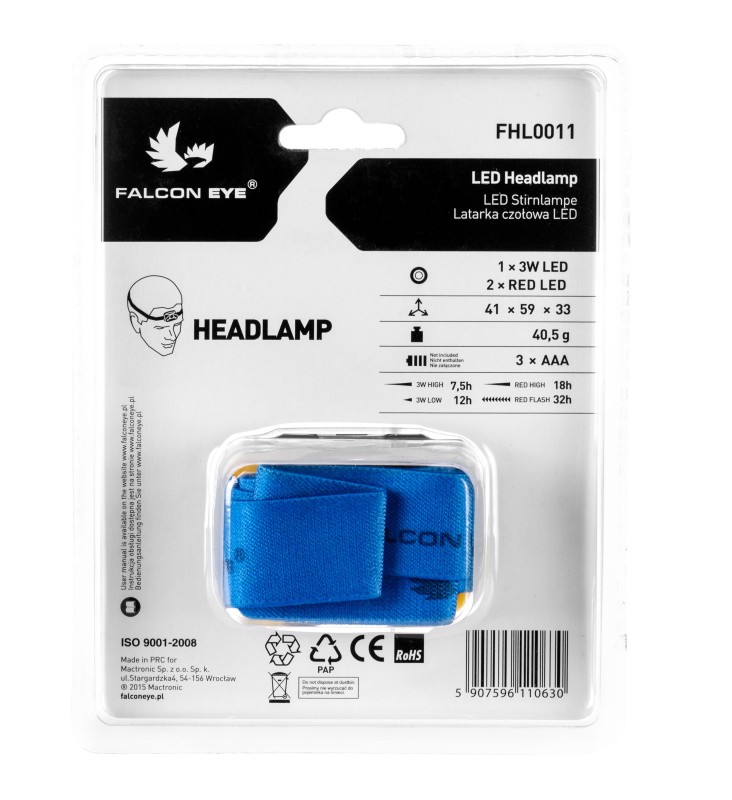 Latarka Czołowa FalconEye 110lm 3xAAA blister