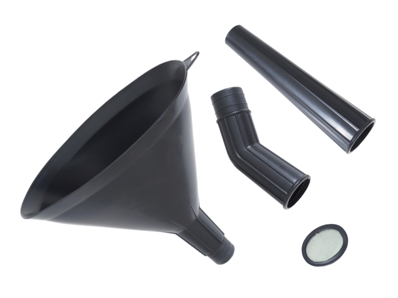 Lejek do paliwa pożyteczny przy przelewaniu benzyny lub ropy oraz innych cieczy. Posiada wewnętrzne sitko, które zatrzymuje zbędne zanieczyszczenia. Możesz dopasować lejek do wykonywanej czynności. Może być prosty lub ukośny!