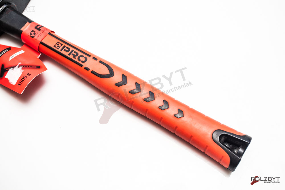 -Głowa młotka wykonana z kutej, wysokogatunkowej stali węglowej -Dodatkowe hartowanie obucha młotka -Rdzeń trzonka z włókna szklanego, stanowiącego około 70% jego objętości -Bardzo twarde połączenie głowy z trzonkiem młotka żywicą epoksydową -Trzonek o ergonomicznym kształcie wykonany z PCV oraz kompozytu TPR