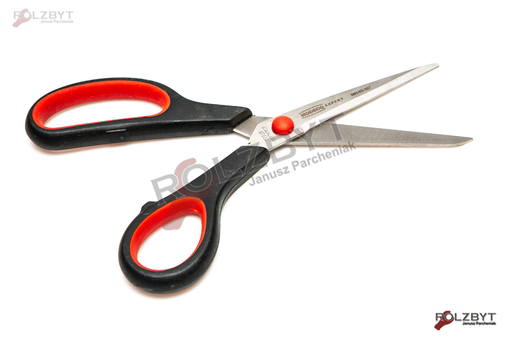 Nożyczki biurowe firmy Modeco wykonane ze stali nierdzewnej bardzo wysokiej jakości. Produkt posiada rączkę Friendly Grip, która jest dopasowana do dłoni, dzięki czemu wykonywana praca jest wygodna. Narzędzie uniwersalne wykorzystywane do cięcia papieru, kartonu, tektury, zdjęć, taśmy samoprzylepnej.