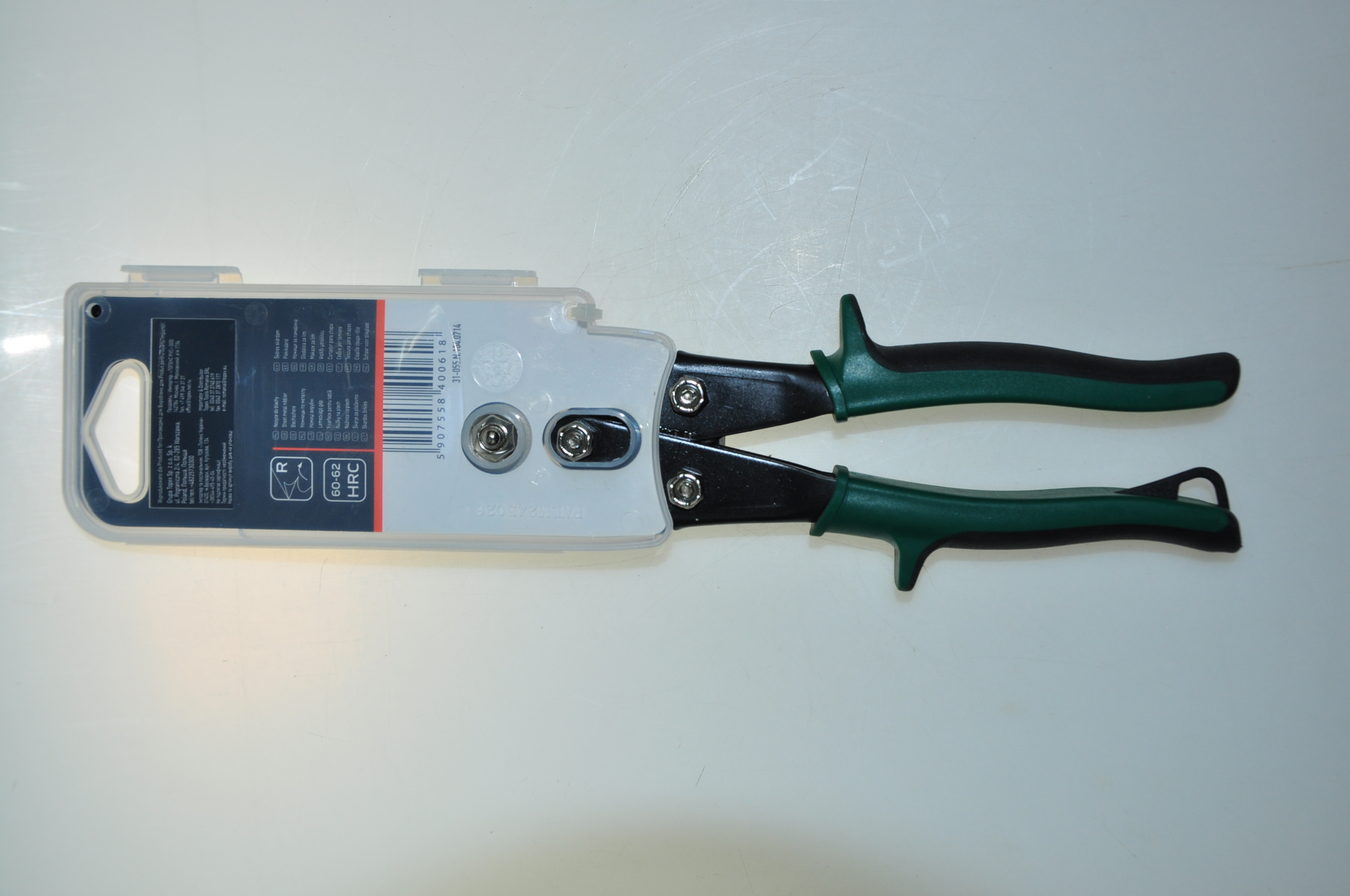 Nożyce do blachy o długości 250 mm prawe. Korpus wykonany z wysokiej jakości stali chromowo-molibdenowej. Ostrza hartowane indukcyjnie, co zapewnia długą żywotność. Konstrukcja zapobiega wyślizgiwaniu się przecinanego materiału podczas pracy. Dzięki antypoślizgowym nakładkom na rękojeść produkt stabilnie leży w dłoni i nie wyślizguje się. Ostre krawędzie szczęk lekko i płynnie przecinają blachę