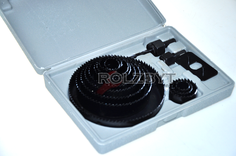 12 x otwornica: 19 mm, 22 mm, 29 mm, 32 mm, 38 mm, 44 mm , 51 mm , 64 mm , 76 mm , 89 mm , 102 mm , 127 mm