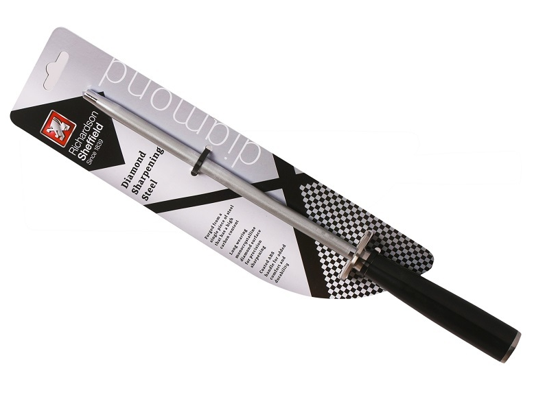 Ostrzałki diamentowe są zdecydowanie agresywniejsze od klasycznych ostrzałek. Przy ich pomocy szybciej wyprowadzimy krawędź tnącą mocno zniszczonego noża, czy też szybciej przywrócimy ostrość roboczą.