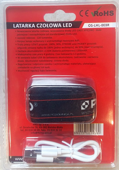 PRO LATARKA CZOŁOWA LED Z AKUMULATOREM LI-ION 120 LM OS-LHL-003R
