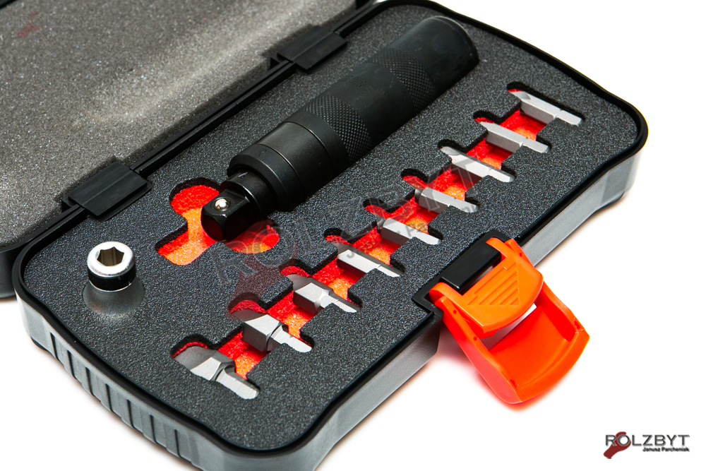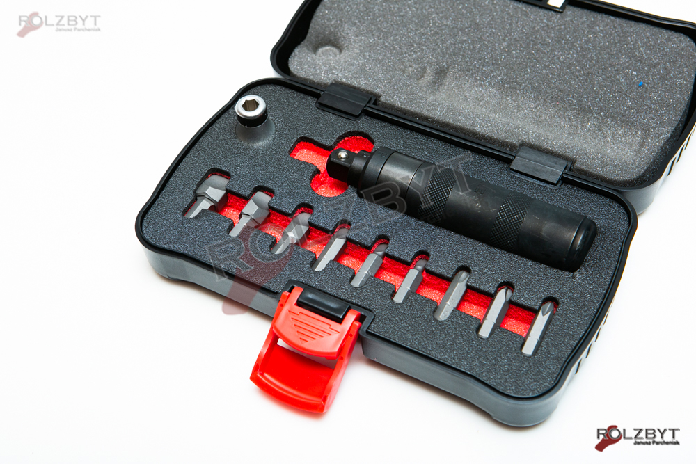 Działanie dwukierunkowe - w lewo i w prawo Wkrętak wykonany z wysokiej jakości stali CrV, bity wykonane ze stali S2 PH1, 2, 3, PŁ 5, 6, 8, 10, 12, 14 Dostarczany w pudełku plastikowym z wypełnieniem z gąbki