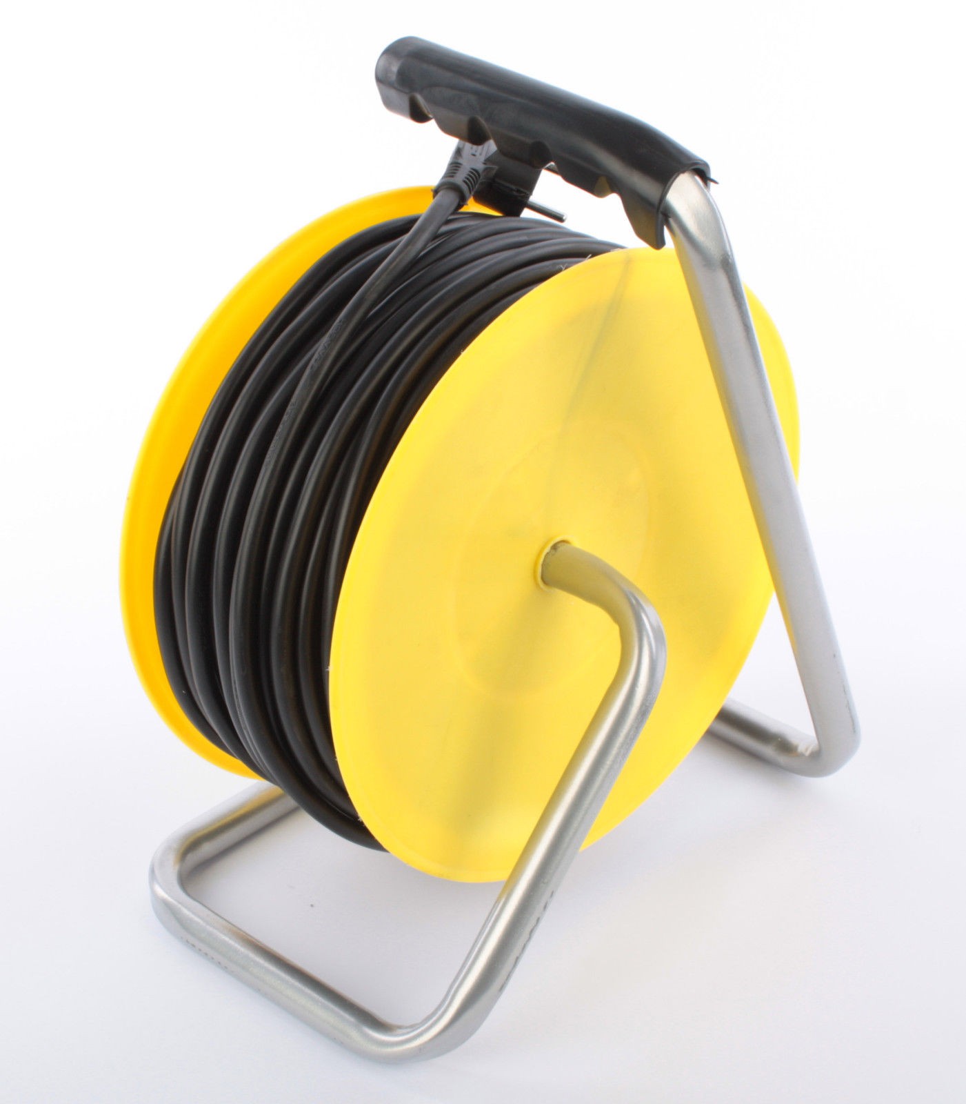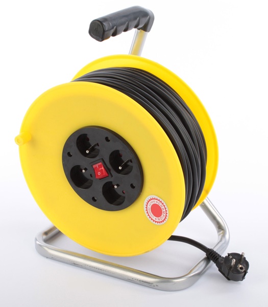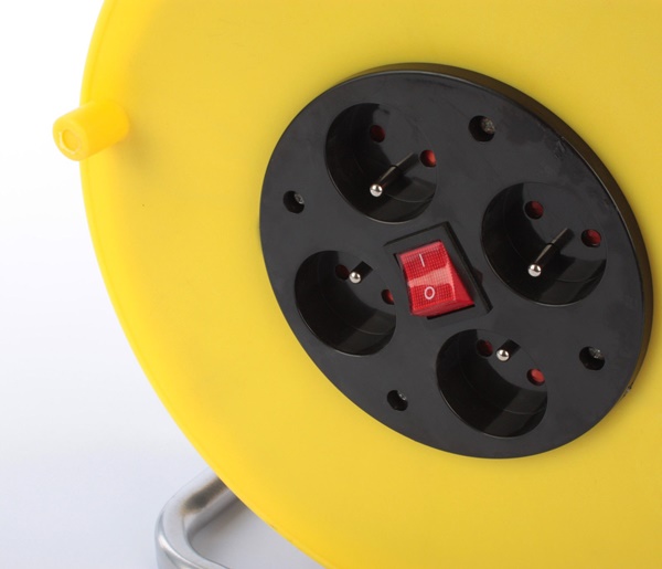 Przedłużacz umieszczono na solidnie wykonanym zwijanym bębnie