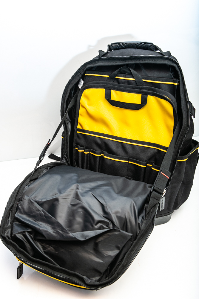 Profesjonalny plecak narzędziowy FatMax firmy Stanley. Duży, pojemny plecak z wyjmowaną podwójna wkładką, licznymi kieszeniami oraz przegródką na laptopa lub tablet
