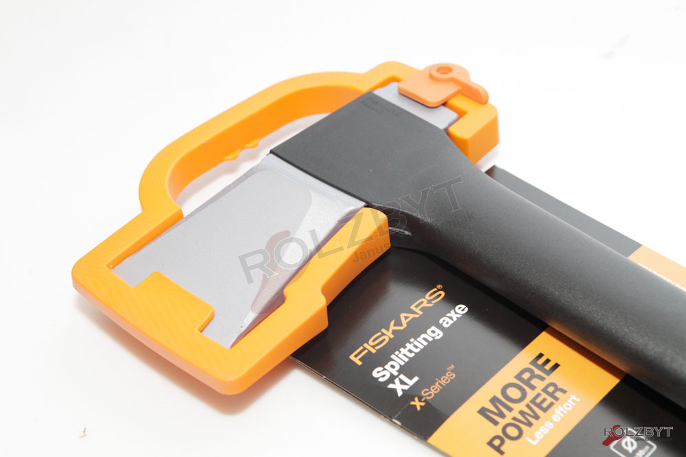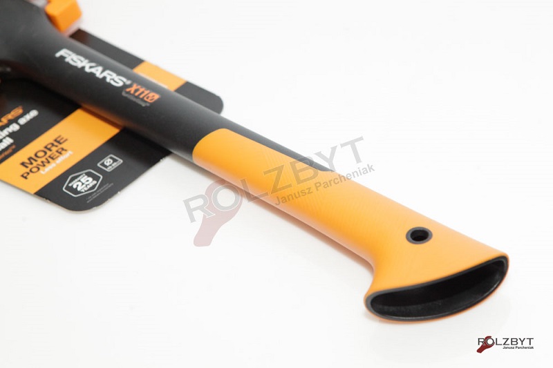 - nowy antywstrząsowy uchwyt – pomarańczowa część trzonka posiada specjalną strukturę oraz specjalne haczykowate zakończenia, które gwarantują pewny chwyt - zapobiegają przesuwaniu się narzędzia w dłoni oraz wyślizgnięcie się siekiery podczas pracy;
