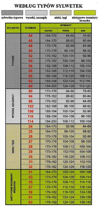 ROZMIAR WZROST OBWÓD PASA OBWÓD KL.PIERSIOWEJ