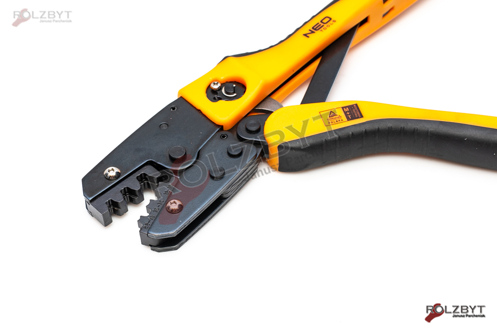 Szczypce do zaciskania końcówek nieizolowanych 22-12AWG, 250 mm, twardość szczęk zaciskających 48-52 HRC, uchwyt pokryty tworzywem TPR, certyfikat TÜV