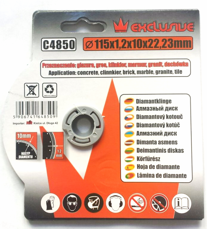 Wymiary tarczy diamentowej Corona Exclusive: 115 x 1,2 x 10 x 22, 23 mm.
