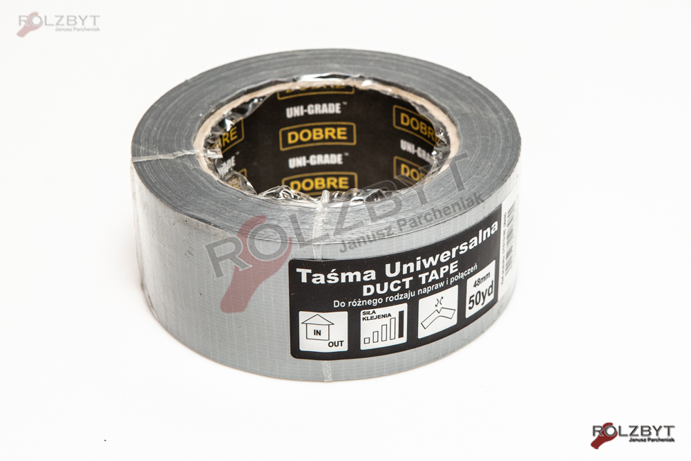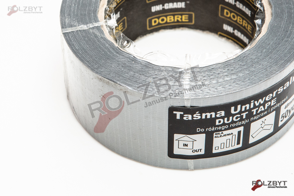 Uniwersalna tkaninowa taśma Duct Tape stosowana m.in. w uszczelnianiu rur wentylacyjnych, reperowaniu powierzchni, awaryjnym reperowaniu węży gumowych, łączeniu folii dachowych, budowlanych, ogrodniczych oraz do wielu innych zastosowań.