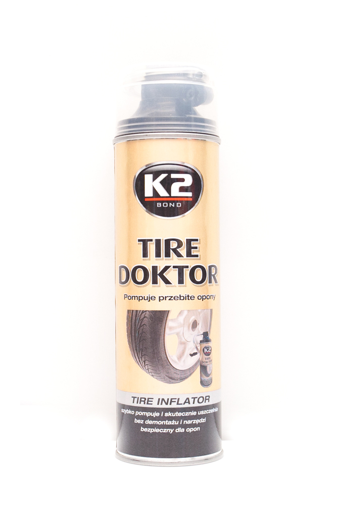 Tire Doktor szybko i skutecznie pompuje i uszczelnia przebite opony - tymczasowa naprawa bez demontażu i użycia narzędzi.
