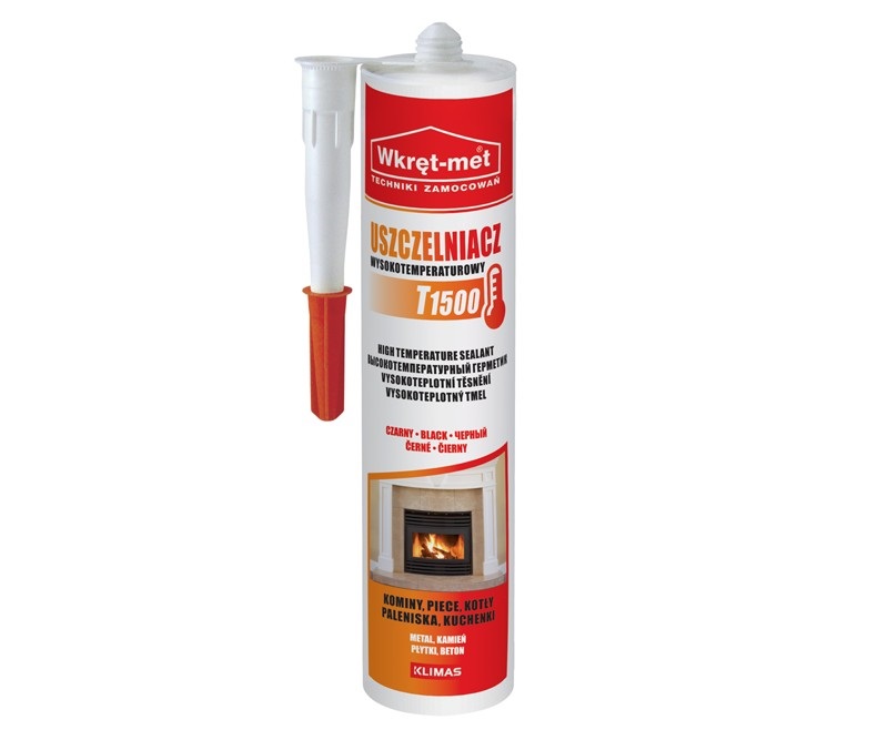 Uszczelniacz wysokotemperaturowy T 1500C jest ognioodporną masą na bazie krzemieniu sodowego przeznaczonądo wypełniania pęknięć ubytków oraz do montażu: kominów, pieców, grillów, kominków, wędzarni, itp. Posiada bardzo dobrą przyczepność do metalu, cegieł płytek ceramicznych i betonu. Nie jest odpowiedni do uszczelnień wymagających elastycznych połączeń (centralne ogrzewanie, instalacja gazowa). Nie należy należy stosować przy kontakcie z żywnością.