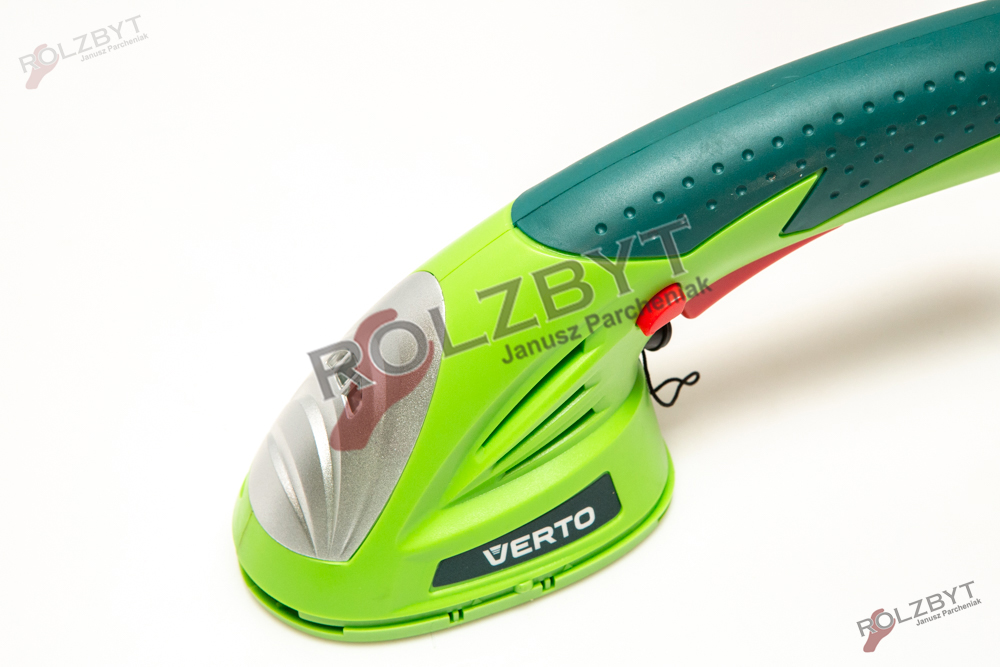 Trymer do trawy i żywopłotu VERTO zasilany wydajnym akumulatorem Li-Ion 7.2V o pojemności 1.3Ah, umożliwia cięcie o szerokości 80 mm (nożyce do trawy) oraz 12 mm (nożyce do krzewów). Zgodność z europejskimi standardami bezpieczeństwa zapewnia certyfikat CE. Marka VERTO oferuje asortyment elektronarzędzi i akcesoriów dla każdego majsterkowicza.