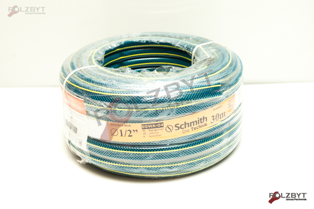 Wytrzymały wąż SCHMITH. Możliwość długoletniego użytkowania dzięki dużej wytrzymałości. Przeznaczony do użytkowania w ogrodzie o strukturze np. trawnika, płyty kamiennej, żwiru.