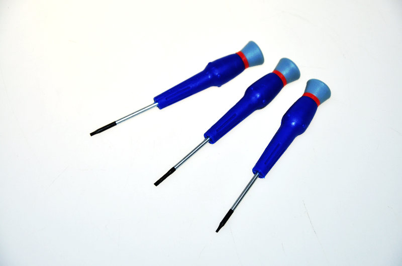 Zestaw ośmiu wkrętaków precyzyjnych 1 x płaskie 3x50 mm 1 x krzyżak (philips) 2,5x50 mm 6 x torx T5x50 mm T6x50 mm T7x50 mm T8x50mm T9x50mm T10x50 mm bimateriałowa rękojeść utwardzone końcówki