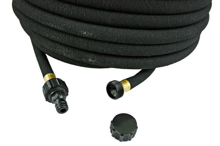 Wąż nawadniający wyposażony jest w zakute adaptery do standardowych szybkozłączy pozwalają na szybkie i łatwe połączenie z wężem ogrodniczym.