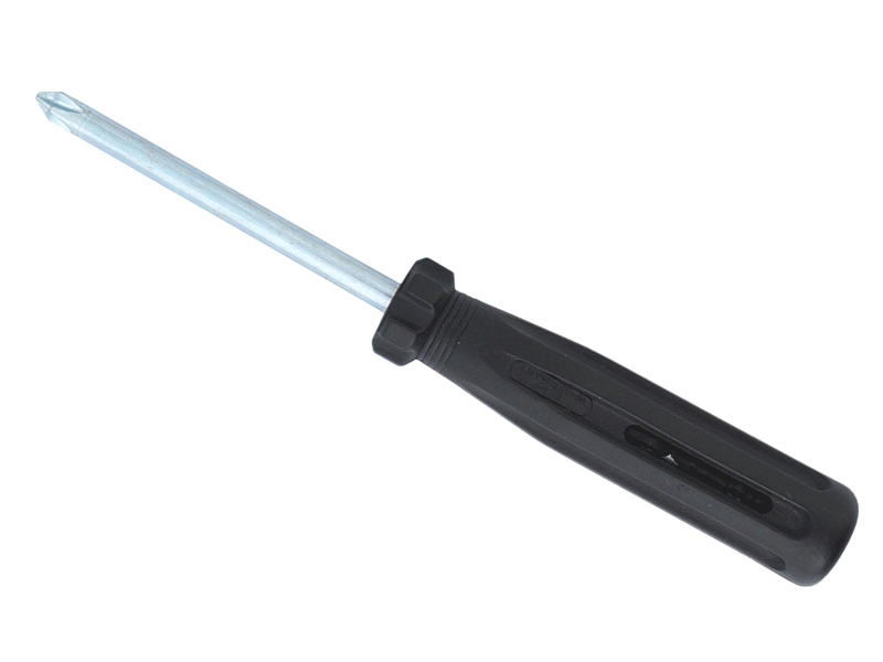 Wkrętak dwustronny płasko - krzyżakowy. Wykonany ze wzmocnionego plastiku i hartowanej stali, chromowany.