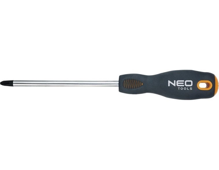Wkrętak krzyżowy PH NEO (nr ref. 04-022) o wymiarach PH1 x 100 mm. Grot wkrętaka wykonany jest z wyjątkowo wytrzymałej stali chromowo-molibdenowej. Końcówka robocza grota została poddana obróbce cieplnej, dzięki czemu uzyskano odpowiednią twardość i odporność na zgięcia 56 HRC. Wkrętak posiada magnetyczną końcówkę. Trójgraniasty kształt uchwytu z wyprofilowanym oparciem dla kciuka zmniejsza obciążenie dłoni podczas pracy i ułatwia uzyskanie optymalnego momentu obrotowego. Uchwyt dwumateriałowy zapobiega ślizganiu się w dłoni, odporny jest na działanie chemikaliów, olejów i smarów. Jakość narzędzia potwierdzona certyfikatem TÜV i 25-letnią gwarancją producenta. Marka NEO spełnia oczekiwania profesjonalistów.