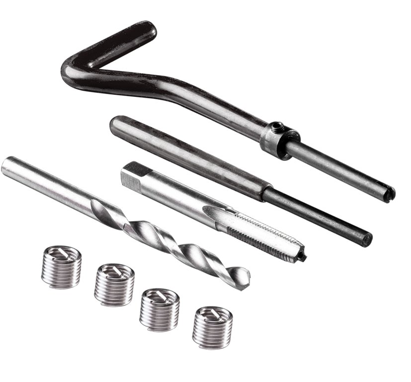 - zestaw do naprawy gwintów M8 - zawiera wykonane z wysokiej jakości stali chromowo-wanadowej akcesoria i reparaturki do naprawy gwintów M8 - gwintownik, wiertło, przyrząd do instalacji wkładki, trzpień do usuwania zabieraka wkładki oraz 4 sztuk reparatorek - kod produktu 11-902