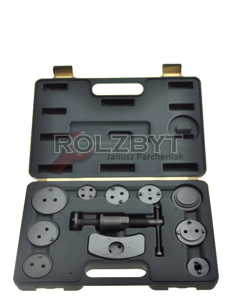 Zestaw do zacisków hamulcowych. Do naprawy tłoków hamulcowych. Zestaw uniwersalny do zastosowania z różnymi modelami samochodów. 11 krążków i pokrętło z magnetyczną końcówką. Odciąga zaciski hamulca tarczowego przy wymianie klocków hamulcowych. Profesjonalna jakość, umożliwia łatwe wycofanie tłoczka hamulcowego do zacisku. Do większości systemów hamulcowych.