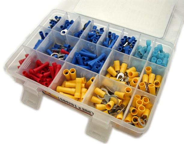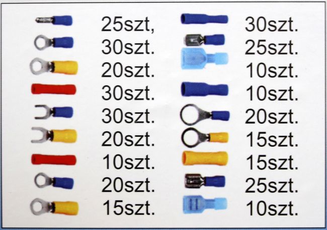 Uniwersalny zestaw końcówek i złączy elektrycznych.